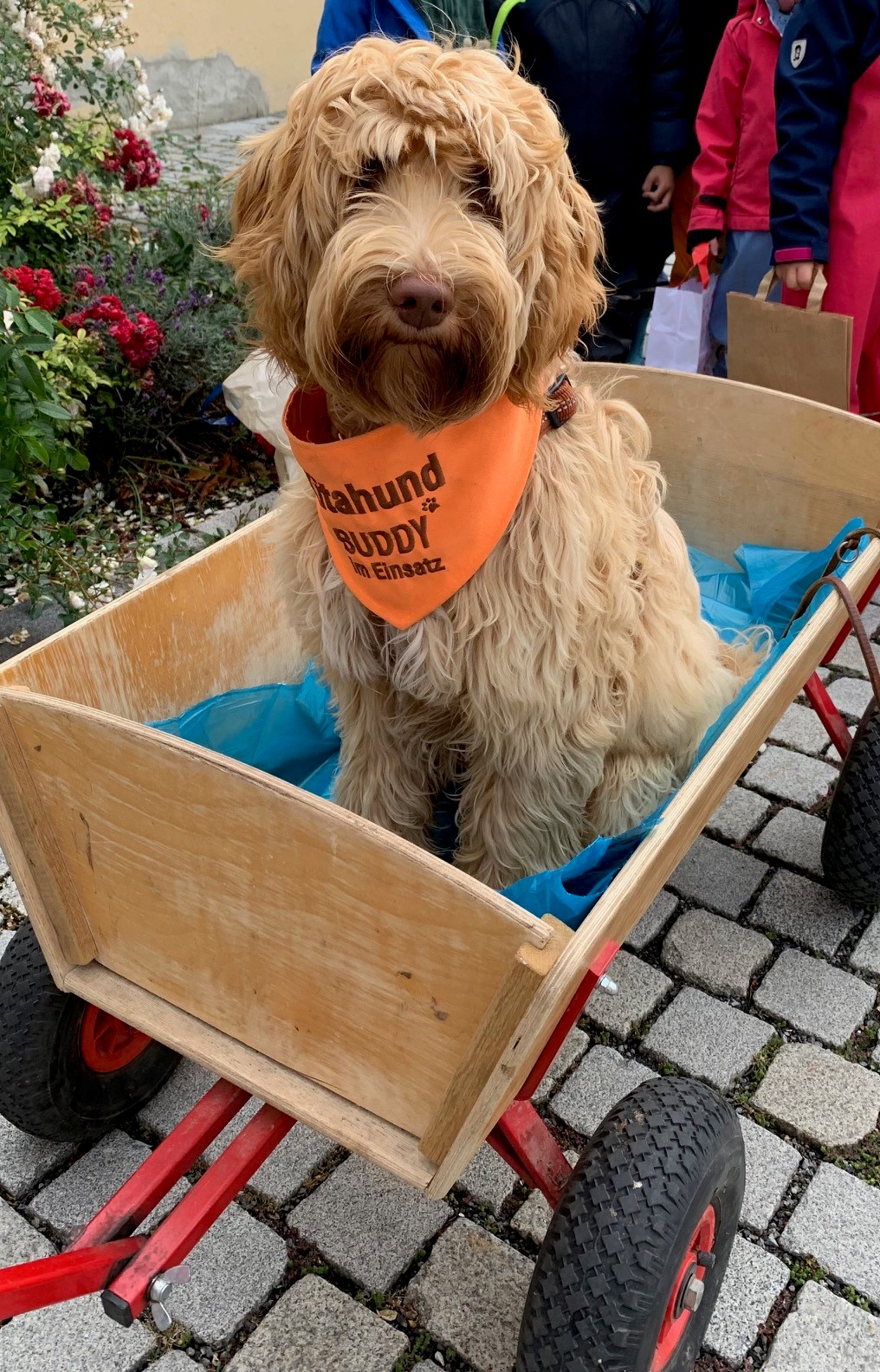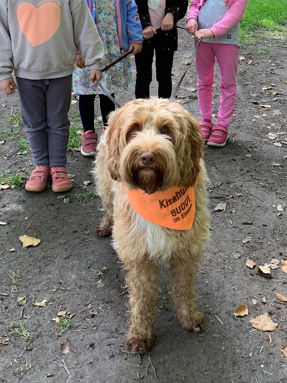 Durch den Einsatz des Kitabegleithundes „Buddy“ werden weitere Förderbereiche wie Sprache und Kommunikation, Motorik und Wahrnehmung, Ausdauer und Konzentration, Umwelt- und Naturwissen, Lern- und Leistungsbereitschaft, Freude an körperlicher Aktivität, Abbau von Stress unterstützt. An verschiedenen Tagen in der Woche finden dazu Begegnungen statt. Diese Begegnungen werden unterschiedlich und individuell auf die Gruppe abgestimmt. Die Kinder können hierbei in direkten Kontakt mit dem Hund treten oder auch nur Beobachter sein. Eine schriftliche Einverständniserklärung der Eltern wird dazu eingeholt.